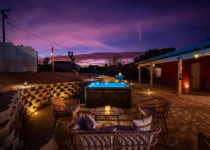 ヴィラはパームスプリングス国際空港から65㎞圏内で、Art Queenなどの文化的名所から2.9km離れた所です。 滞在中は、浴室2室の別荘から自動車で約10分のJoshua Tree Health Foodsを訪れたり、そこから自動車で15分Joshua Tree Certified Farmers' Marketへ行ったりできます。 ショッピング愛好家には、Sun Alley Shopsから3km離れた所のロケーションがお勧めです。
